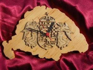 1113 - Nagy Magyarország óra megyékkel 34 x 23 cm pirogravírozott, égerfából 8 900 Ft